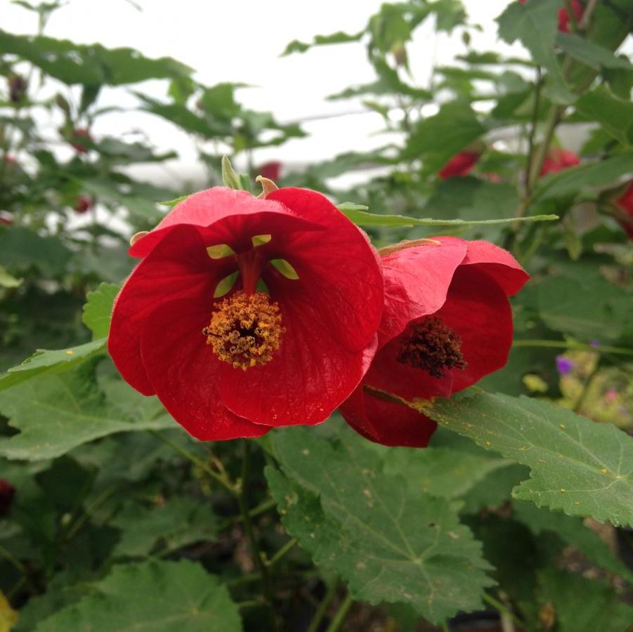 Abutilon Red Princess - компактное обильноцветущее растение, прекрасно подходит для содержания на подоконнике. Размер взрослого абутилона - 30-50 см. Листья бархатистые, резные. Цветение обильное. Цветок - широко раскрытый колокольчик ярко-красного цвета с темным зевом, лепестки глянцевые и гладкие.