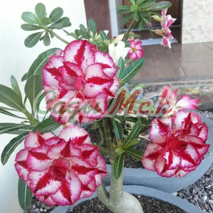 У нас выращивается как комнатное. Фантастический по красоте цветок. Цветет Адениум в основном с весны по осень. При соблюдении оптимальных условий выращивания может цвести почти круглогодично. Существуют экземпляры, возраст которых насчитывается более 75 лет. По утверждению разводчиков, эти растения способны жить до 200 лет, переходя из поколения к поколению.