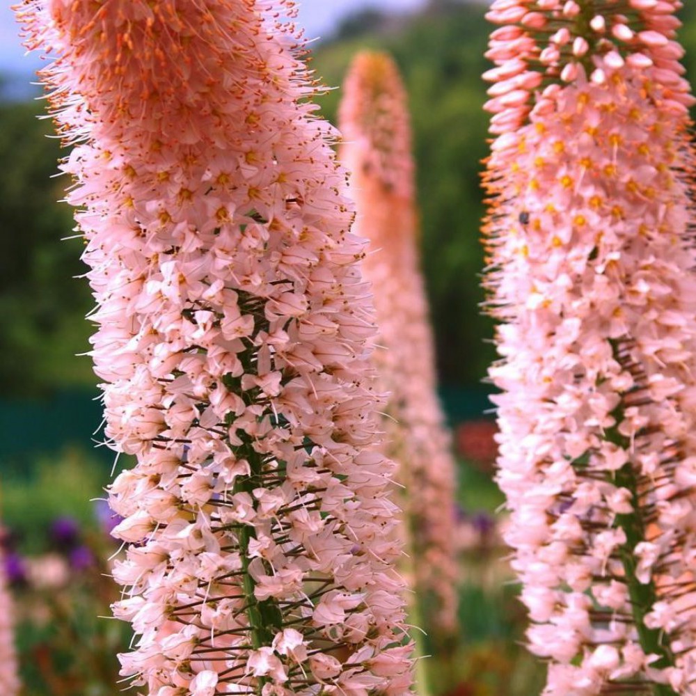Эремурус гибридный Рофорд в период цветения характеризуются большим количеством мелких нежно-розовых цветков, которые собраны в высокие прямостоячие кисти-соцветия. Голый стебель, на котором расположена зауженная к верху кисть, выходит непосредственно из земли. Рофорд используется как в одиночной, так и в групповой посадке. Очень эффектно смотрится срезанная кисть в вазе, где она сохраняет свежий вид достаточно долго. Данный сорт будет радовать обильным и продолжительным цветением при посадке на открытом, солнечном, желательно возвышенном участке. Предпочитает богатый органикой и хорошо дренированный грунт.