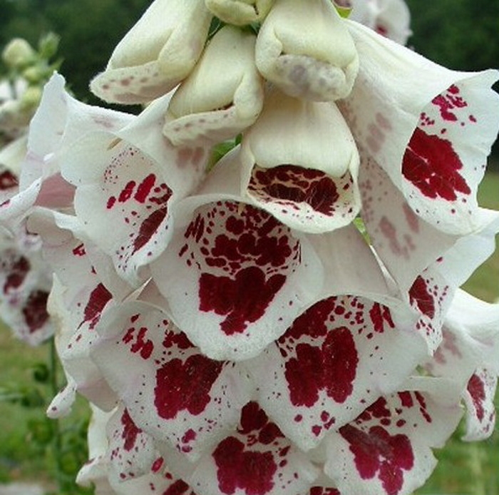 Наперстянка Spotted Giant - сорт с исключительно крупными, эффектными цветками, украшенными выразительными пурпурными пятнами. Постепенное распускание цветков на высоких стройных цветоносах длительное время обеспечивает растению декоративность. Высота 100-140 см.
