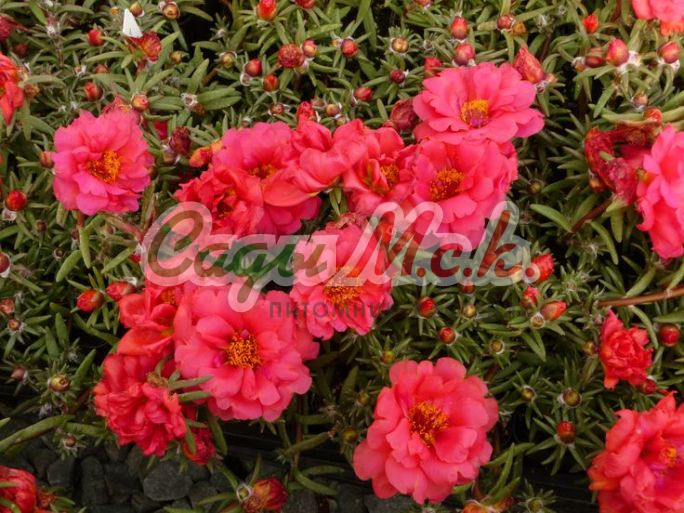 Ценнейший почвопокровный однолетник, со стелящимися сочными стеблями, высотой 15-30 см. Цветки вишневые, крупные, махровые, до 5 см в диаметре. Свето- и теплолюбив, устойчив к жаре и засухе, отлично приспосабливается к прохладному сырому климату. Цветет обильно до заморозков на самой скудной, даже каменистой почве без подкормок. Семена сеют на рассаду в марте-апреле поверхностно, прикрывают стеклом или пленкой, держат на свету. Всходы появляются через 7-14 дней. Пикируют в горшочки диаметром 5-6 см, с очень умеренным поливом. Рассаду, обязательно закаленную, высаживают в грунт после того, как минует угроза весенних заморозков, на расстоянии 15-20 см друг от друга. Рекомендован как эффектное ампельное растение, для оформления бордюров, каменистых горок, вазонов и контейнеров.
