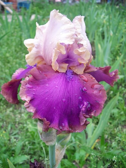 Ирис Burgermeister - мощный и впечатляющий сорт ириса. Желтоватый с лавандовым налетом верх, орхидейно-пурпурный низ. Высота 70-80 см.