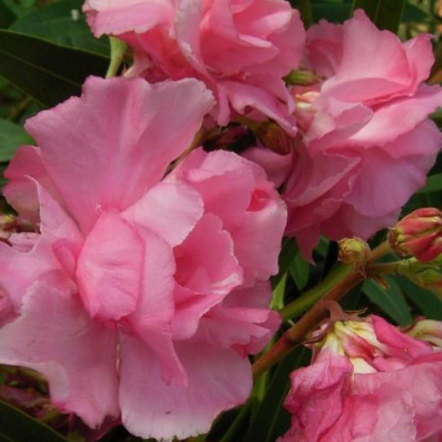 Олеандр обыкновенный Гигантум (лат. Nerium oleander Splendens Giganteum) - обильноцветущий сорт. Побеги толстые, листья огромные, темно-зеленые. Цветки махровые, большие, достигают 8-9 см диаметром. Их окрас светло-розовый с насыщенно-розовыми оттенками и жилкованием. Аромат цветков напоминает запах роз. Внимание! Олеандр - ядовитое растение, поэтому при его культивировании требуется осторожность.