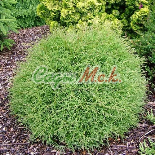 Карликовый шаровидный хвойный кустарник с ажурной кроной. Диаметр растения не превышает 0,9 м. В 10-летнем возрасте диаметр не более 0,7 м. Не требует стрижки для сохранения идеальной шарообразной формы долгое время. Хвоя нитевидная, серо-зеленая, мягкая, кружевная. Сохраняет свой цвет в зимний период, со слегка бронзовым оттенком. Предпочитает солнечные места, умеренно влажные, хорошо дренированные почвы. Рекомендована обрезка в начале весны или в середине лета для формирования формы идеального шара