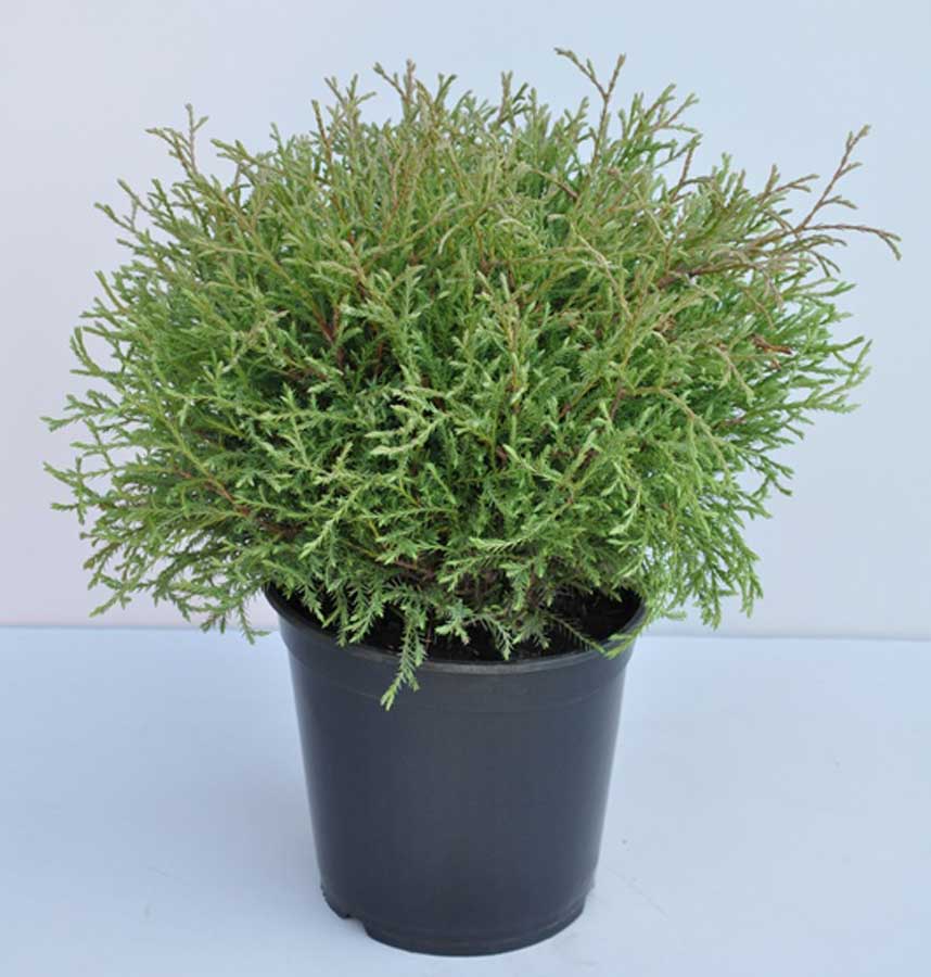 Карликовый шаровидный хвойный кустарник с ажурной кроной. Диаметр растения не превышает 0,9 м. В 10-летнем возрасте диаметр не более 0,7 м. Не требует стрижки для сохранения идеальной шарообразной формы долгое время. Хвоя нитевидная, серо-зеленая, мягкая, кружевная. Сохраняет свой цвет в зимний период, со слегка бронзовым оттенком. Предпочитает солнечные места, умеренно влажные, хорошо дренированные почвы. Рекомендована обрезка в начале весны или в середине лета для формирования формы идеального шара